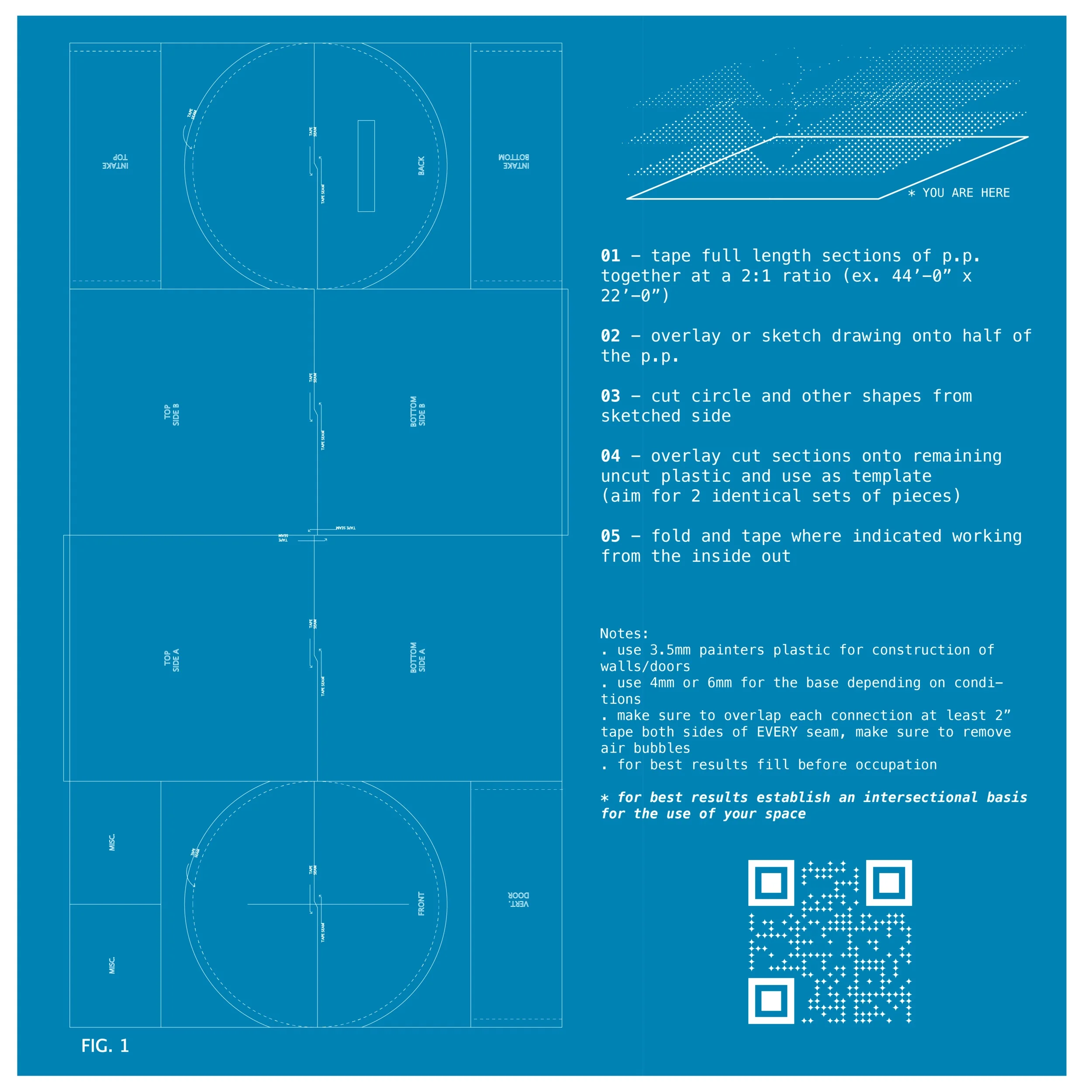 these plans/instructions are to be used by transient communities or communities with no available means to occupy a permanent structure or landscape. The construction and placement of the physical space can be seen as an essential part of ‘grounding’ our own communities. After the question of physical placement has been addressed questions of ideological, economic, and moral placements can follow.